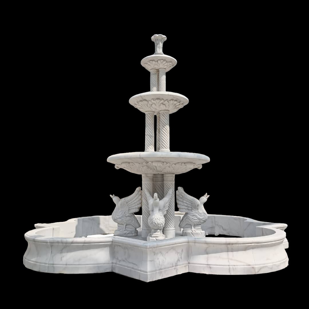 SEO Meta: Marble Swan Four Tier Column Fountain with Basin – AmazingStatuary.com