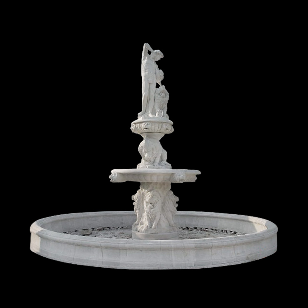 SEO Meta: Marble Lady and Lions Fountain with Basin – AmazingStatuary.com