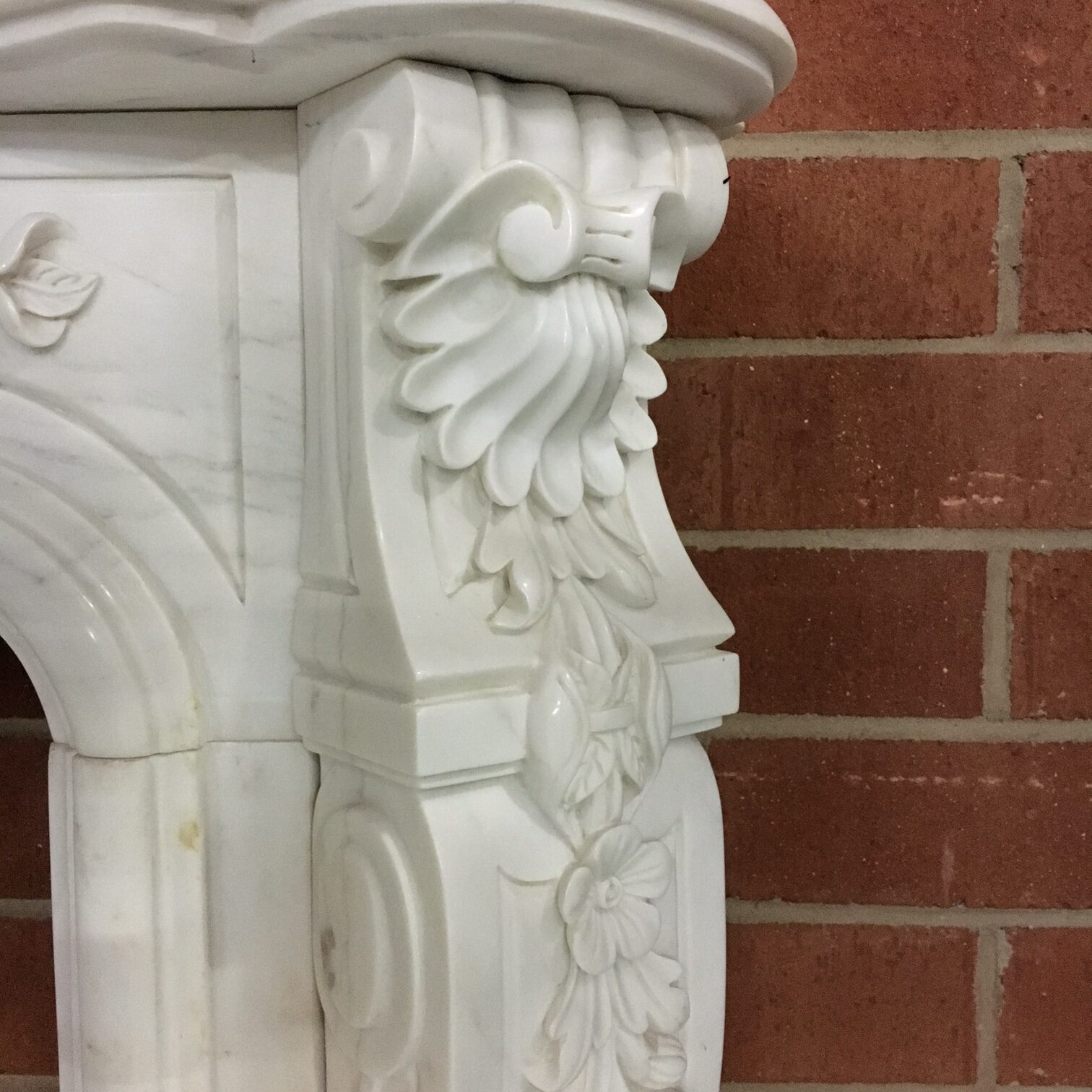 Marble French Garland Fireplace Surrounding Mantel from AmazingStatuary.com is masterfully carved from a single, solid block of natural marble, honoring a sculptural tradition that spans thousands of years. This method of carving—rather than casting or assembling—ensures both structural integrity and artistic purity, allowing the natural beauty of the stone to remain uninterrupted. Each piece begins as raw marble, selected for its density, veining, and tonal consistency, then slowly revealed through the disciplined hand of a skilled artisan.