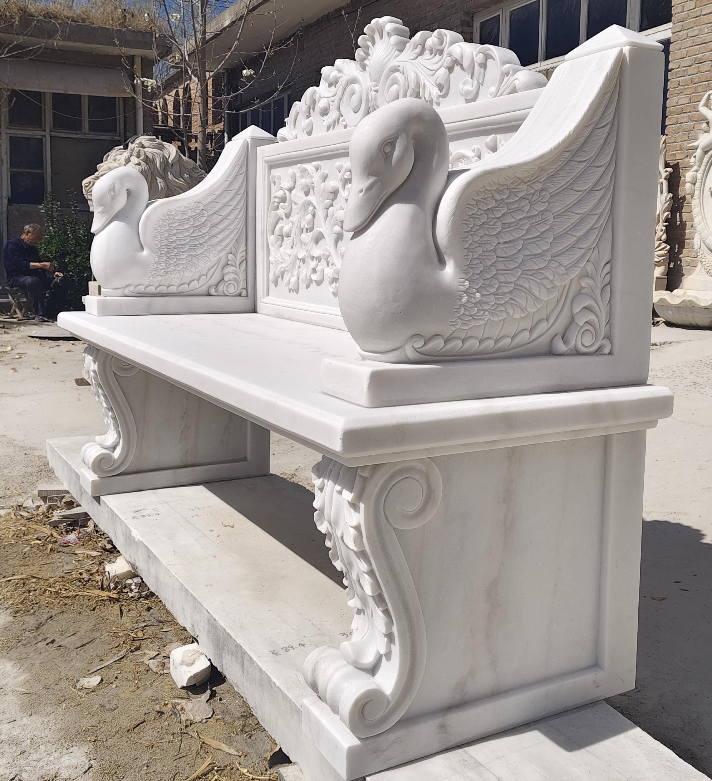 SEO Meta: Marble Swan Bench – AmazingStatuary.com